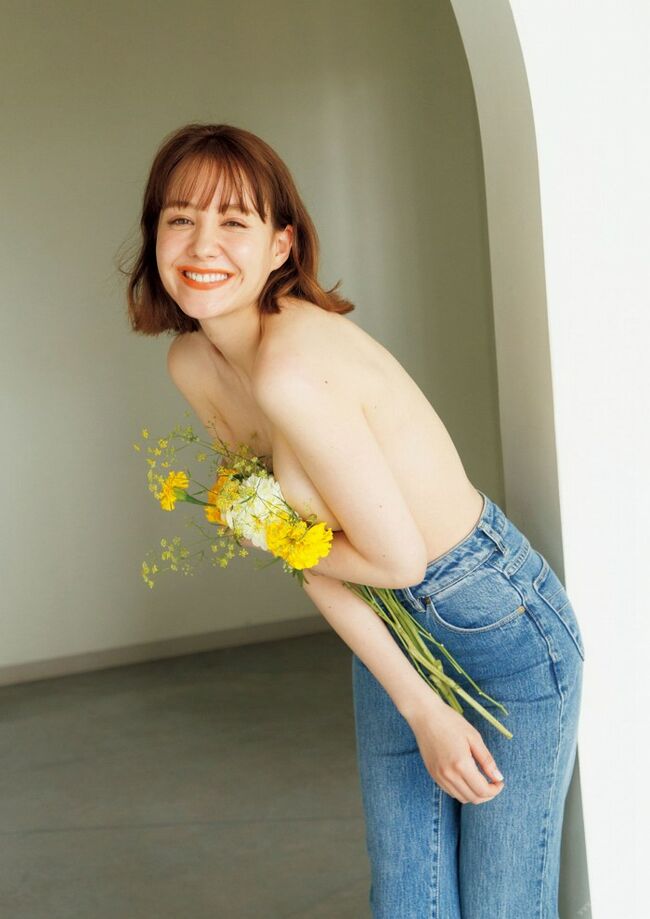 カジュアルなワンピースやナチュラルなランジェリー姿でも、いやらしさがなく、むしろ“アート”として成立しているのが特徴。