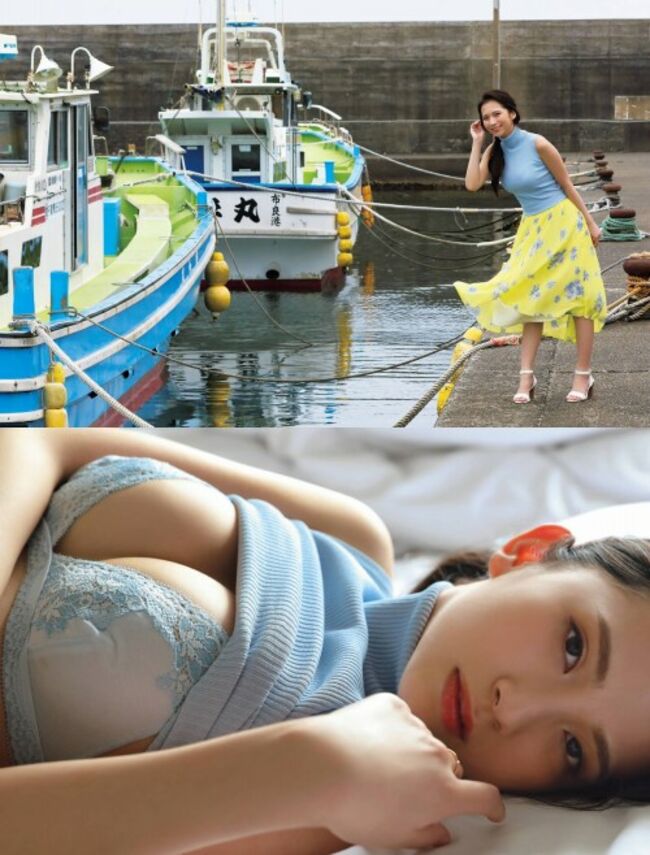 水着姿での爽やかさ と 大人のランジェリーショットでの妖艶さ を自在に切り替える表現力